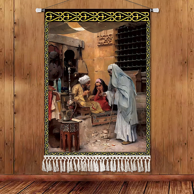 Beauty Uyghur Ethnic Style Wall Tapestry, Artistic Background Decoration, Boho Hanging Art for Bedroom, Living Room, or Cafe
