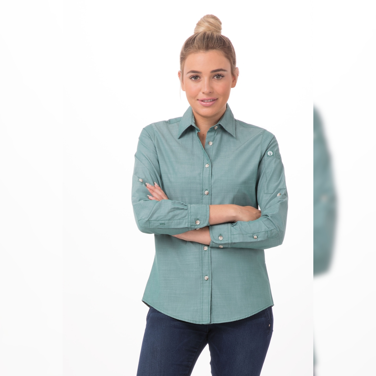 Chef Works® CHAMBRAY Damenbluse Nebelgrün Größe M