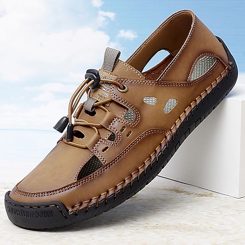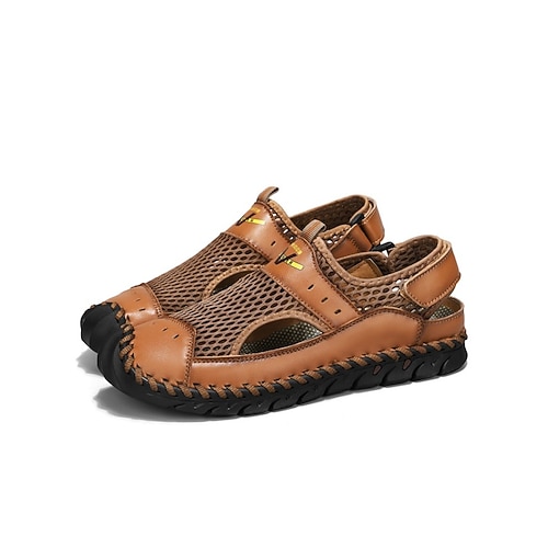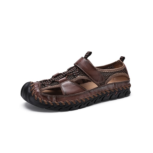 sandali da pescatore in pelle da uomo - sandali estivi traspiranti con punta chiusa per abbigliamento casual e outdoor