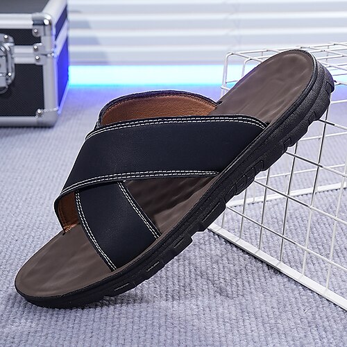 Per uomo Sandali Scarpe romane Cuoio Traspirante Comodo Antiscivolo Fibbia Nero Marrone