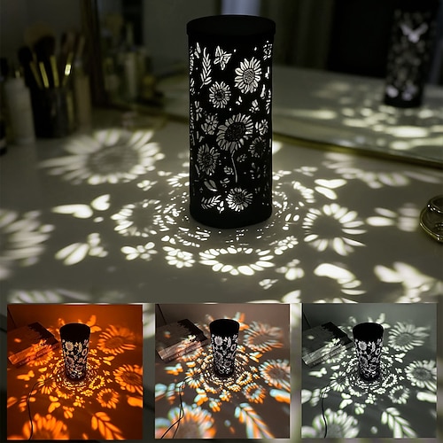 Lampada di proiezione a forma di girasole retrò in metallo e ferro, con ombra cava, alimentazione USB, per interni, soggiorno, sala da pranzo, testiera del letto, atmosfera, decorazione, luce notturna