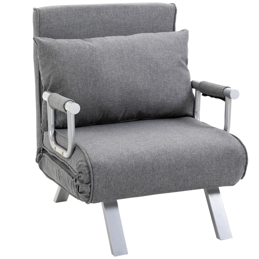 Homcom Poltrona Letto con Schienale Regolabile in 5 Posizioni, Tessuto Effetto Lino e Acciaio, 75x70x75 cm, Grigio Aosom Italy