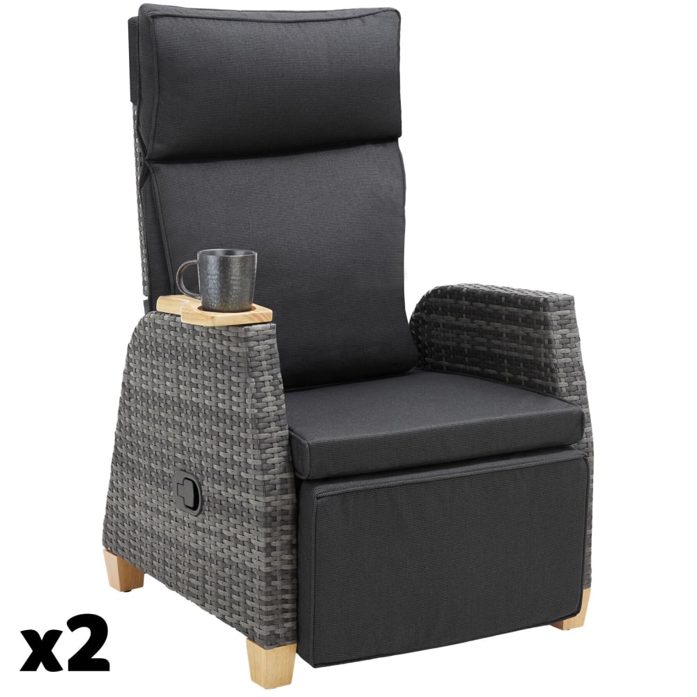 Set di 2 poltrone con schienale regolabile in rattan e alluminio