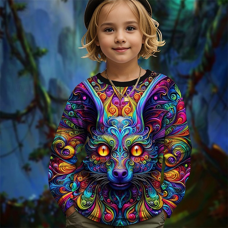 Girls' 3D Animal Sweatshirt Long Sleeve Spring Fall Fashion Basic Kids 4-12 Years Crew Neck Outdoor Casual Daily Regular Fit