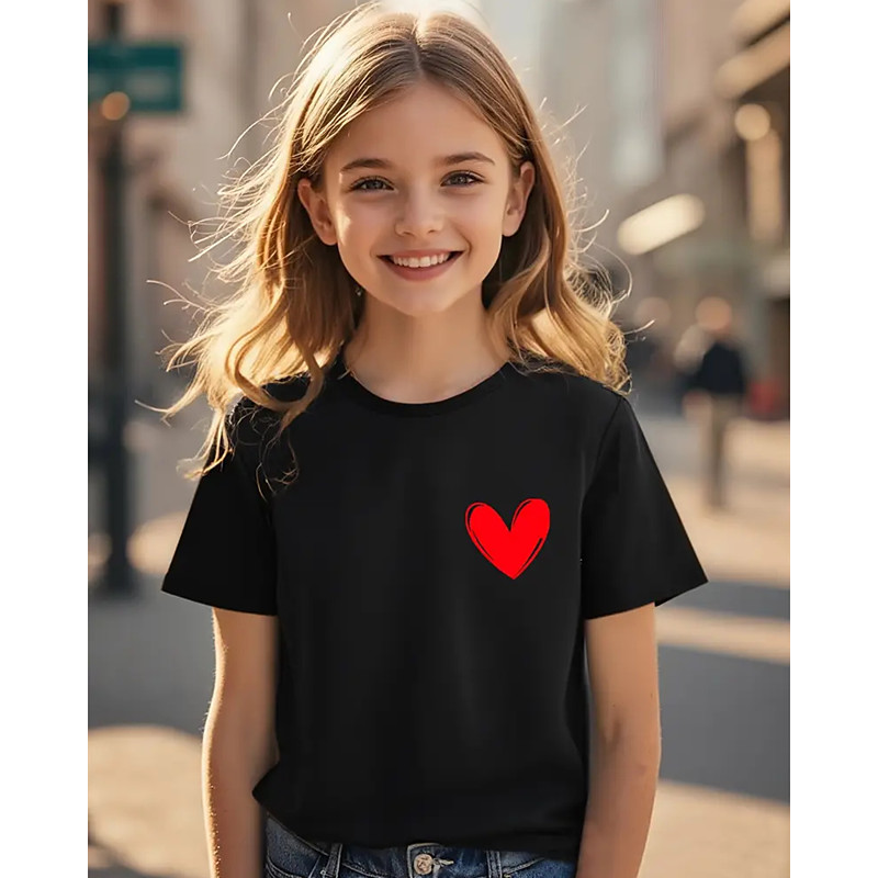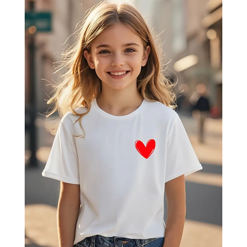 Girls' 3D Heart T shirt Tee Short Sleeve Summer Spring Fashion Basic Kids 4-12 Years Crew Neck Outdoor Casual Daily Regular Fit