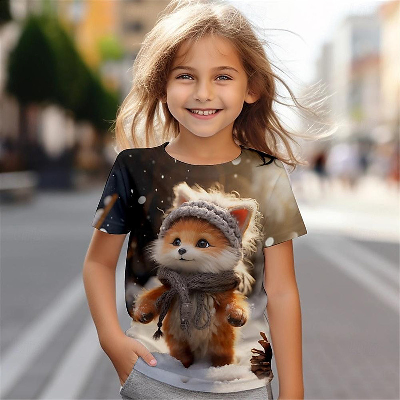 Girls' 3D Animal T shirt Tee Short Sleeve Summer Spring Fashion Basic Kids 4-12 Years Crew Neck Outdoor Casual Daily Regular Fit