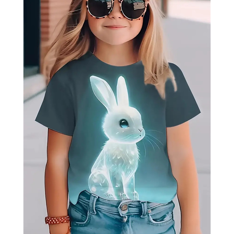 Girls' 3D Rabbit T shirt Tee Short Sleeve Summer Spring Fashion Basic Kids 4-12 Years Crew Neck Outdoor Casual Daily Regular Fit