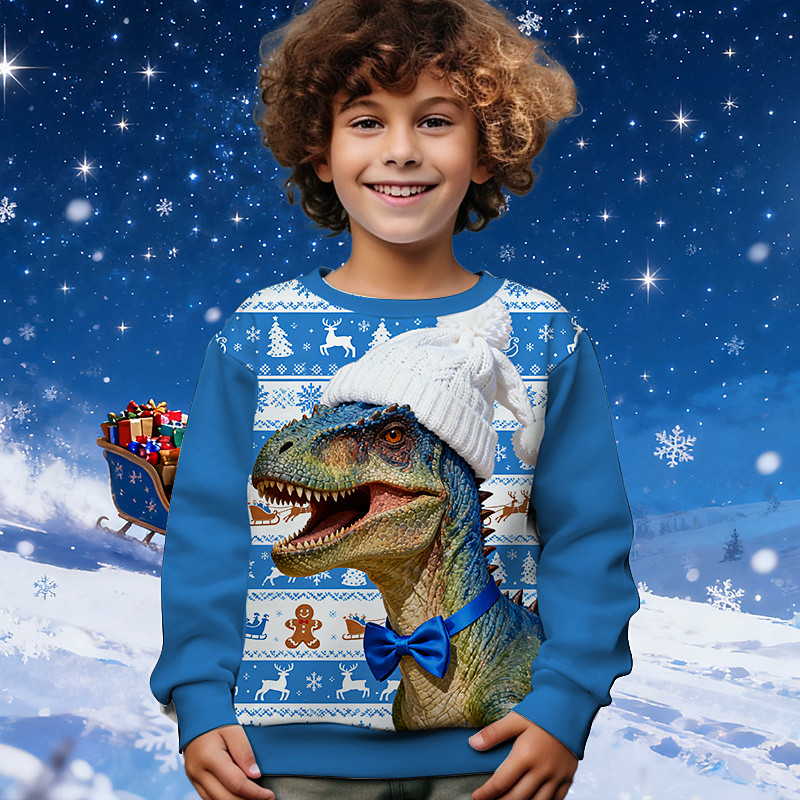 Christmas Boys' 3D Dinosaur Sweatshirt Long Sleeve Spring Fall Fashion Basic Kids 4-12 Years Crew Neck Outdoor Casual Daily Regular Fit
