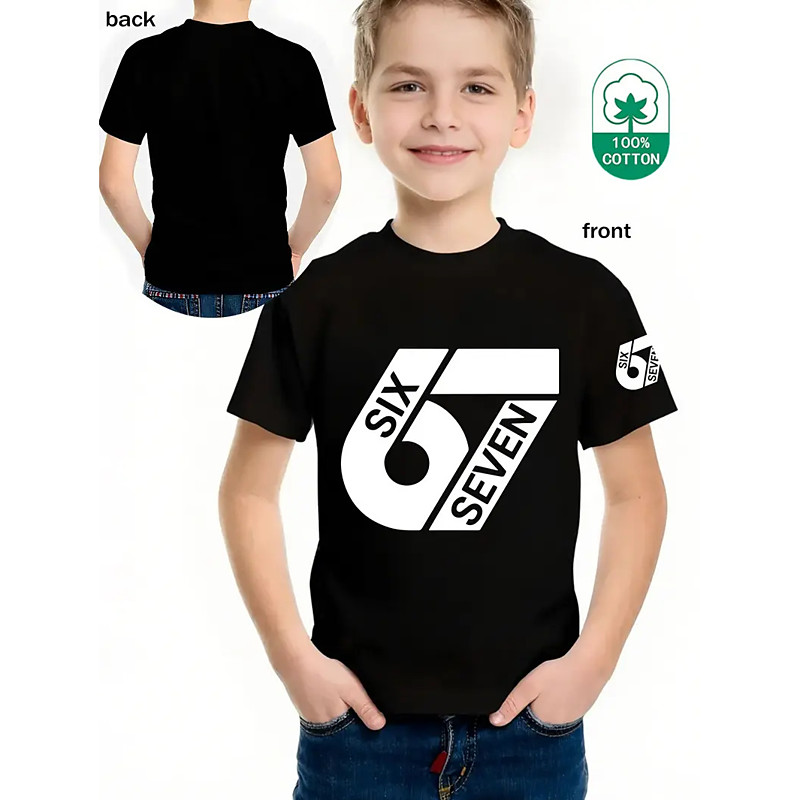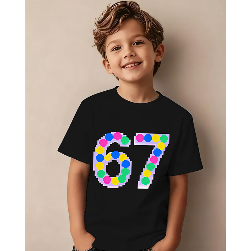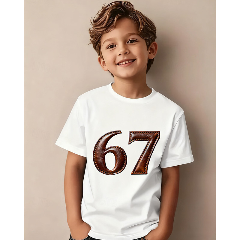 Cotton Kids Boys' Black White Graphic Funny Slang 67 T shirt Blouse Crew Neck Short Sleeve Outdoor Dailywear Fashion Streetwear Designer Summer