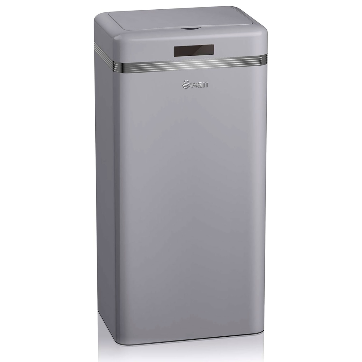 SWAN Retro Mülleimer mit Automatisch öffnender Sensor, Metall, 45 L, Vintage-Design, SWKA4500GRN, Grau