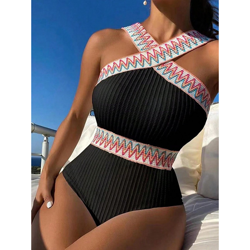 Women's One Piece Swimsuit Slimming Sexy Cutout Monokini Tummy Control High Waist Slim Backless Vacation Beach Wear Color Block Halter Neck Sleeveless Bathing Suits