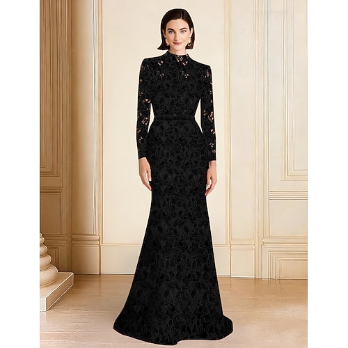 Sirena Tromba Lunghezza al pavimento Abiti da Ballo Abito da Sera Da principessa Abito formale Elegante Scintillante Stile Celebrità Manica Lunga Collo Alto Festa in giardino Matrimonio Pizzo Velluto