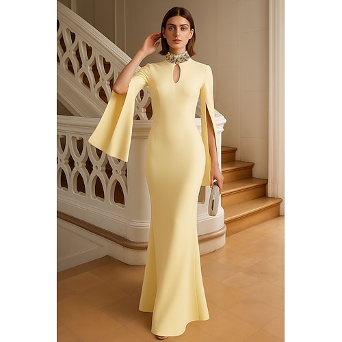 Sirena Tromba Lunghezza al pavimento Abito da invitata a nozze Abito Formale Abito da sera Abito da cerimonia per signora Mezza Manica Girocollo Collo Alto Elegante Formale Ospite di nozze Riunione