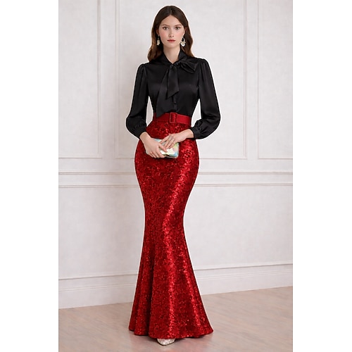 Sirena Tromba Strascico a Terra Lunghezza al pavimento Abiti da Ballo Abito da Sera Da principessa Abito formale Elegante Scintillante Stile Celebrità Manica Lunga Collo Alto Festa in giardino