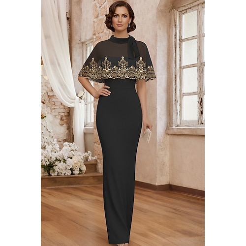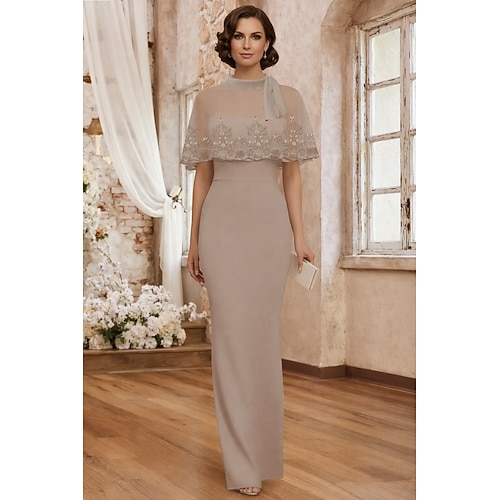 Sirena Tromba Tubino Colonna Lunghezza al pavimento Abito da ballo con mantello Abito da Sera Abito formale Elegante Setoso Senza Maniche Collo Alto Matrimonio Formale Mantelle Crepe Elasticizzato con
