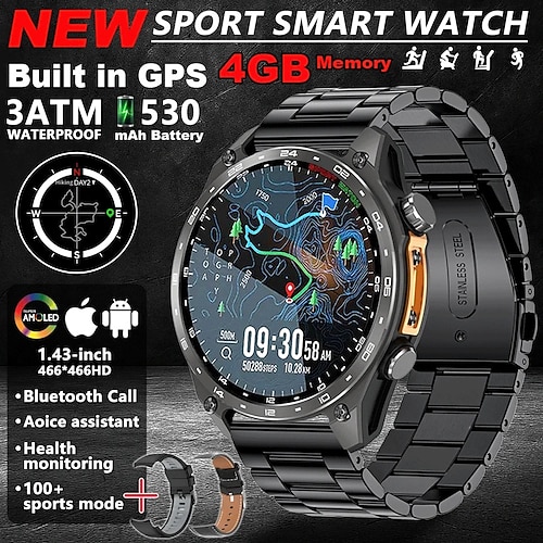 2025 Nuovo 1.43 pollici GPS bussola altitudine barometro outdoor smartwatch HD 466466 schermo AMOLED frequenza cardiaca chiamata Bluetooth IP68 orologio intelligente da uomo regalo di San Valentino