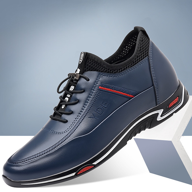 Men's Blue Faux Leather Sneakers with White Rubber Sole – Comfortable Lace-Up Sneakers for Sports, Travel and Casual Wear