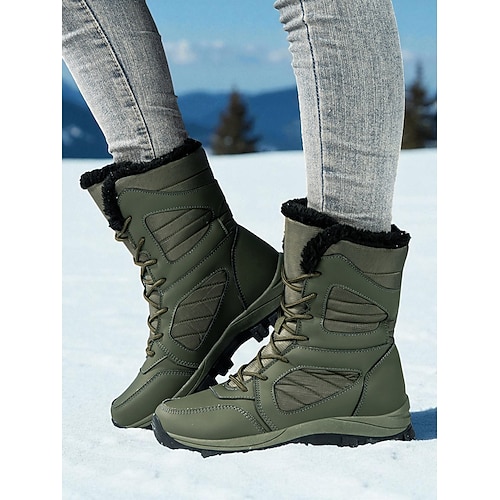 stivali da neve invernali da donna con lacci e polsino in maglia – stivali da combattimento impermeabili e caldi per esterni con cerniera laterale e suola antiscivolo per il freddo e l'escursionismo