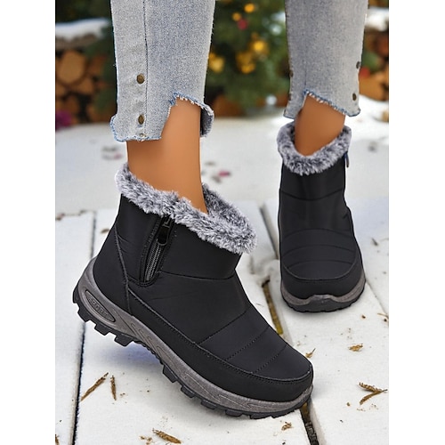 stivali da neve invernali caldi da donna con fodera in pelliccia sintetica e cerniera laterale, stivaletti antiscivolo impermeabili per l'uso all'aperto