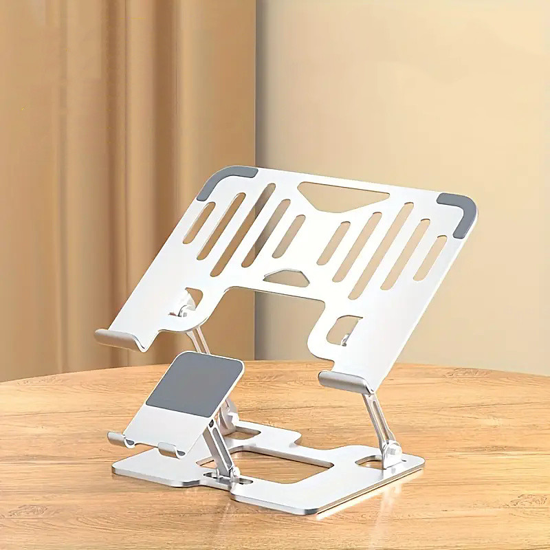 2-in-1 Adjustable Carbon Steel Mobile Phone Laptop Stand With Tablet Holder - Foldable Design 180 Height Adjustment Suitable For Computers Tablets And Smartphones