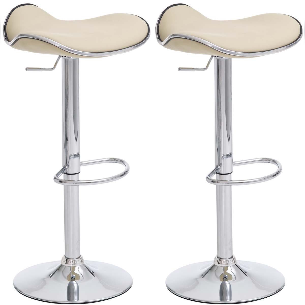 DELUKE 2er Set Barhocker TANOR - Kunstleder Creme 45x45x71 cm Silber | Barstuhl Höhenverstellbar Mit Lehne Drehbar Tresenhocker Tresenstuhl Kneipenhocker