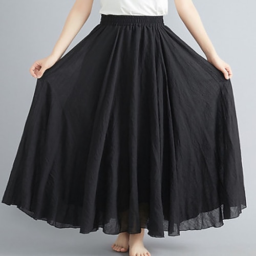 Per donna Gonna Casual Maxi Vita media Gonne Semplice Arricciato Micro-elastico Quotidiano Streetwear Verde mela blu navy Nero Verde chiaro Estate Spandex Cotone