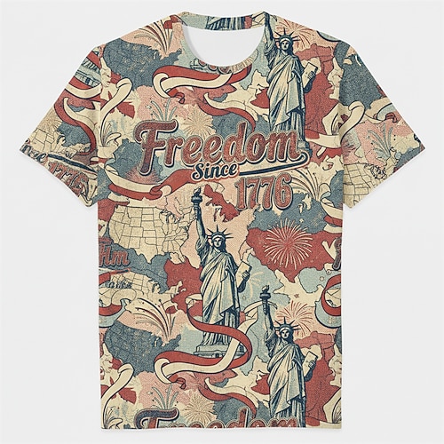 250° anniversario USA T-shirt Maglietta grafica Testo USA Statua della Libertà Patriotico Retrò Vintage Casual Corte 1776-2026 per Unisex Adulti Stampa 3D per Giorno dell'Indipendenza / 4 Luglio 4