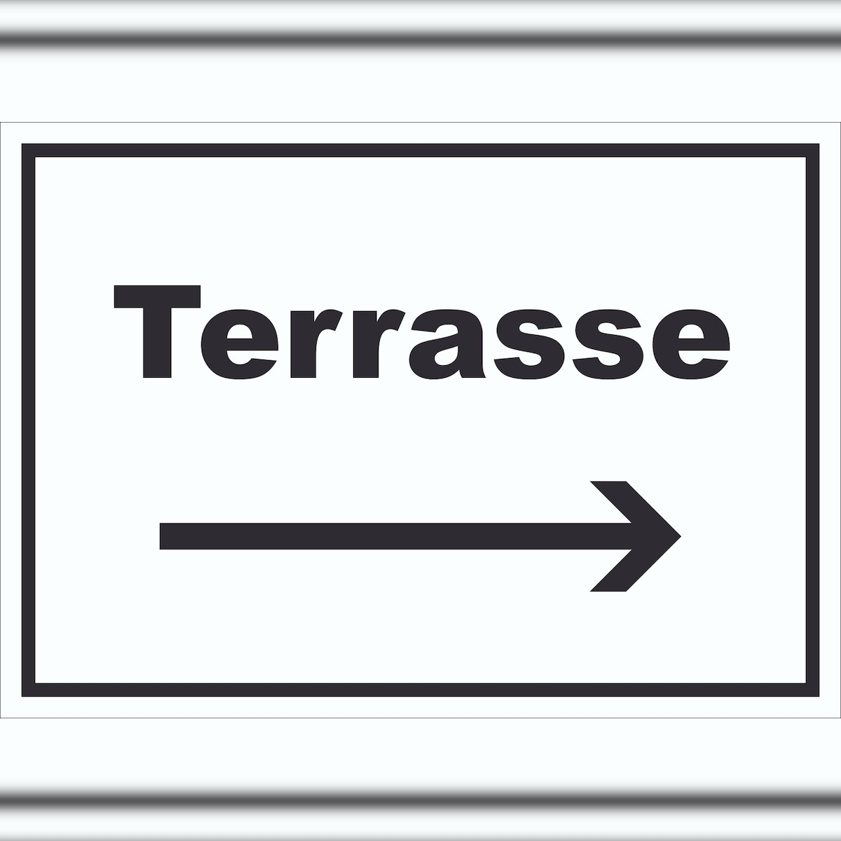 HB-Druck Terrasse Schild mit Text und Richtungspfeil rechts waagerecht A0 Rückseite selbstklebend