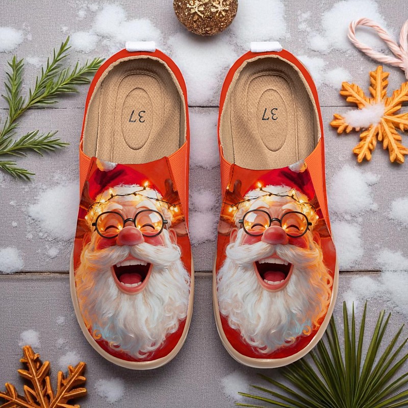 Women's Wide Toe Santa Claus Canvas Travel Shoes – Comfortable Christmas Casual Walking Shoes for Holiday Trips and Everyday Wear