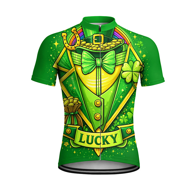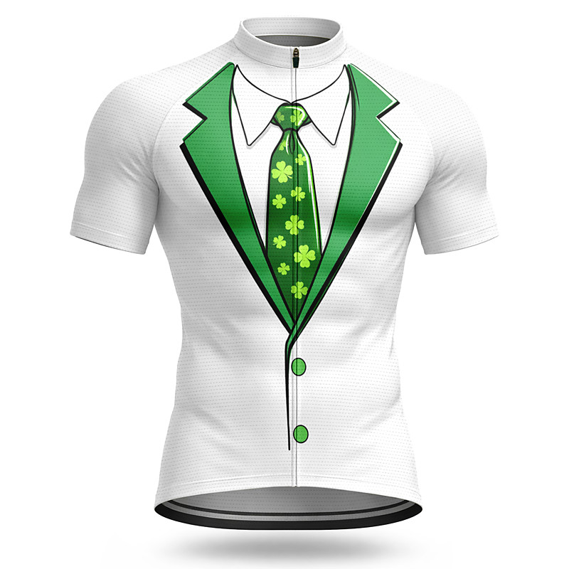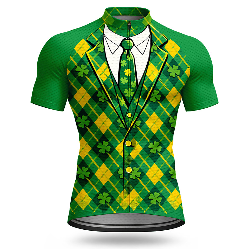 Men's St Patrick Jersey Cycling Jersey Downhill Jersey Four Leaf Clover Suit T-Shirt Tuxedo Short Sleeve Bike Jersey T Shirt Top with 3 Rear Pockets UV Resistant Fast Dry With Pockets Front Zipper
