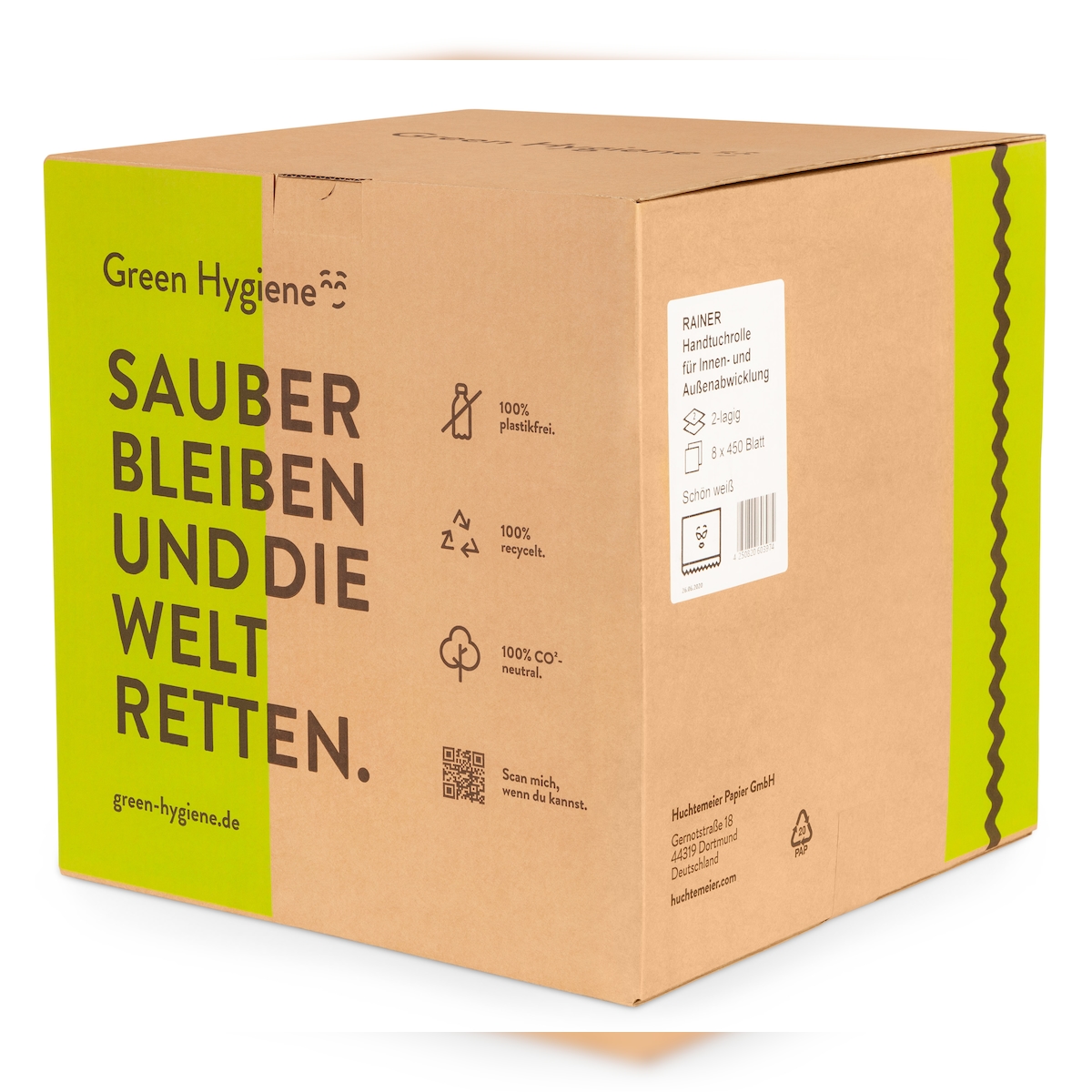 Huchtemeier Green Hygiene - RAINER Handtuchrolle 2-lagig 8 Rollen á 450 Blatt