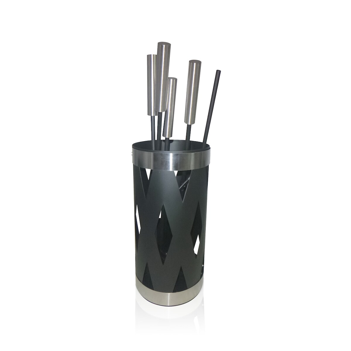 Relaxdays Kaminbesteck modern, 5 teilige Kamingarnitur, Schaufel, Besen, Zange, Schürhaken & Halter, Ofenbesteck, grau