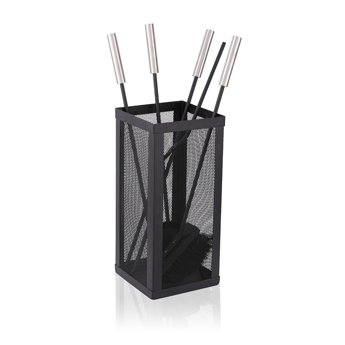 Relaxdays Kaminbesteck, 5-tlg. Set, Schürhaken, Ascheschaufel, Besen, Zange & Ständer, Ofengarnitur, schwarz/silber