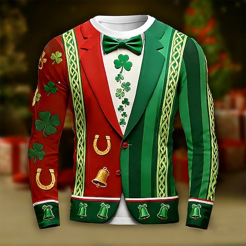 Maglietta da uomo per il giorno di San Patrizio, costume da folletto, smoking verde, papillon, maglietta con grafica 3D, divertente vestito per festa irlandese, abbigliamento, abbigliamento S M L XL