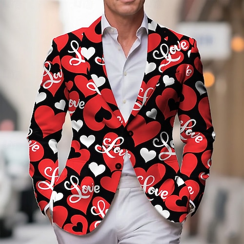 San Valentino Per uomo Cuore Giacca blazer Cappotto Di tendenza Confortevole Traspirante Artistico Casual Abbigliamento da sera Festival Tasca Stampa 3D Bottoni Tutte le stagioni Dentellato Manica