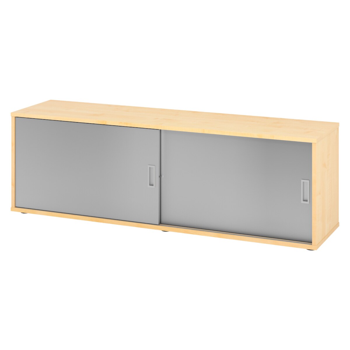 bümö Lowboard Schiebetürenschrank in Ahorn/Silber - Büromöbel Sideboard aus Holz, 160 cm breit, Büroschrank nur 40 cm schmal, Büro Schrank mit