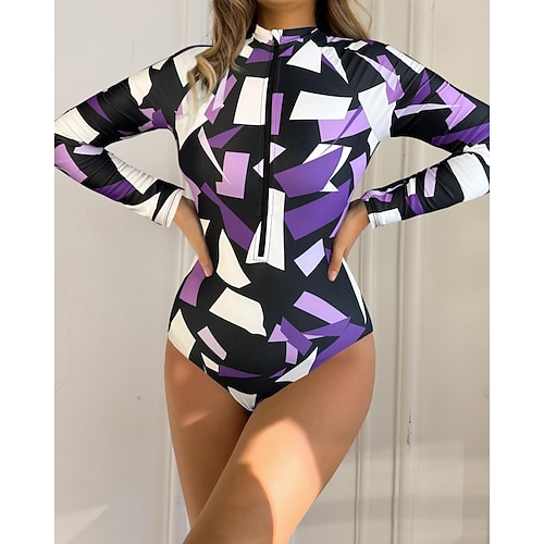 Per donna Medio spessore Top sottomuta Rash Guard One Pieces Costume da bagno Geometrico Con zip Protezione UV Elastico Manica Lunga Costume da Bagno Body Surf Immersione Nuoto Estate