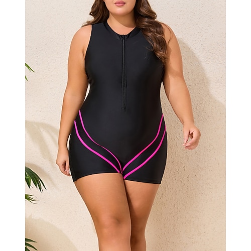 Per donna Standard Costumi da bagno taglie forti Rash Guard One Pieces Costume da bagno Color-blocking Con zip Protezione UV Elastico Senza Maniche Costume da Bagno Body Surf Immersione Nuoto Estate