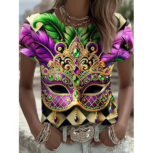 T Shirt da Donna Carnival Graphic Vintage Moda Elegante Maniche Corte Maniche Lunghe Collo Tondo Tops Regolari Daily Stampa Nera Viola Estate Primavera