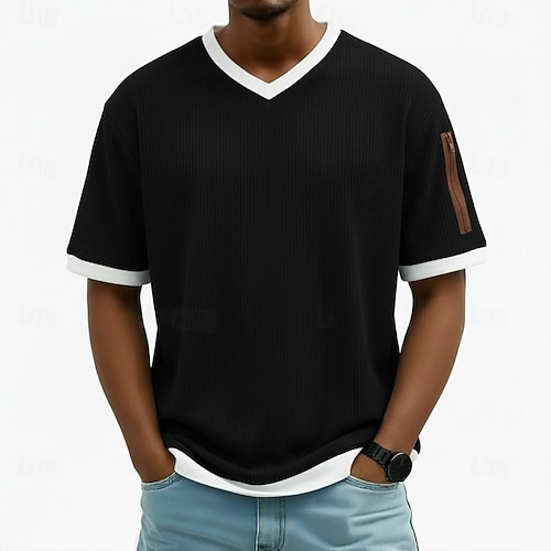 Per uomo Maglietta Camicia di Velluto a Coste Camicia a Maniche Corte Manica Corta Scollo a V Estate Primavera Blocco di colori Moda Streetwear Testurizzato Patchwork Quotidiano Sport Outdoor Sport