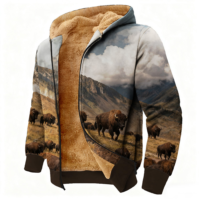 Men's Deer Hoodie Sweatshirt Fashion Western Cowboy Long Sleeve Crew Neck Vacation Streetwear Blue Brown Green Zip Up Fall Winter Designer S M L XL XXL XXL