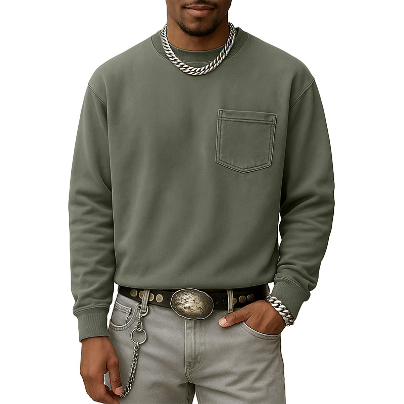 Men's Sweatshirt Pullover Blue Wine Red Yellow Army Green Navy Blue Crew Neck Plain Patchwork Pocket Sports Outdoor Casual Daily Vintage Streetwear Sportswear Spring Fall Clothing Apparel Hoodies