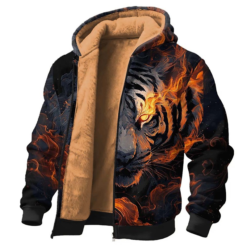 Men's Tiger 3D Fleece Hoodie Jacket Sweatshirt Classic Fantasy Crew Neck Outdoor Camping Black Dark Blue Zip Up Fall Winter Designer S M L XL 2XL 3XL