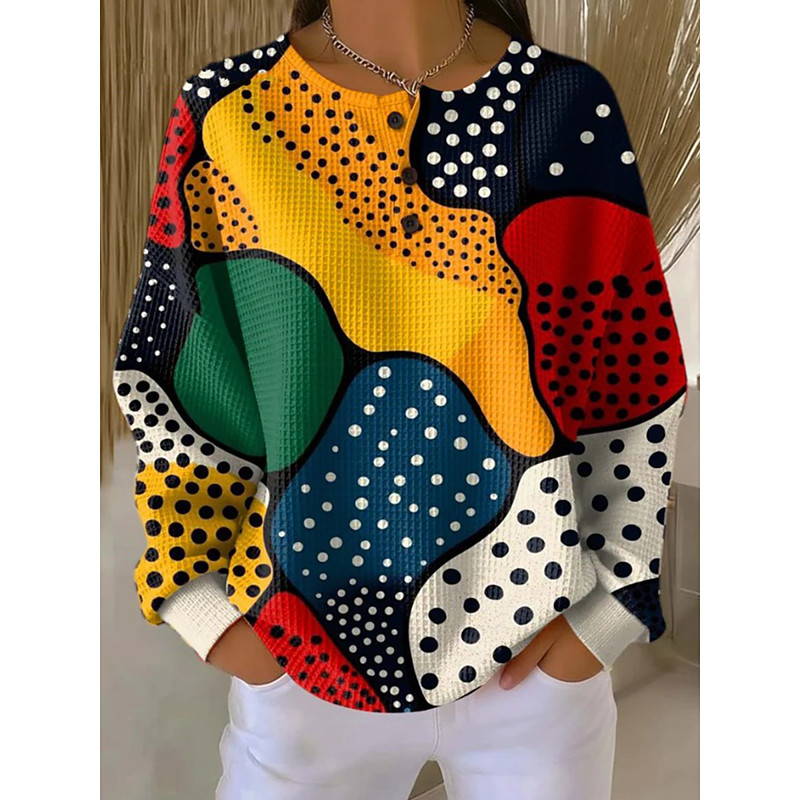 Women's Pullover Hoodie Sweatshirt Geometric Fashion Long Sleeve Crew Neck Regular Tops Black Yellow Pink Spring Fall Winter