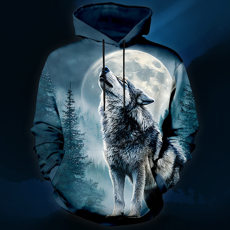 Men's Moon Wolf Hoodie Sweatshirt 3D Fantasy Crew Neck Streetwear Club Gift Blue Blue 3# Blue 2# Drawstring Fall Winter Designer S M L XL XXL XXXL