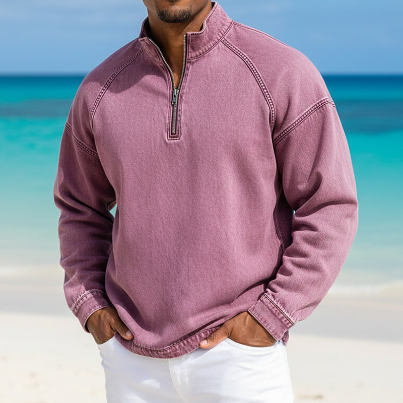 Men's 100% Cotton Acid Wash Shirt Tee Top Long Sleeve Stand Collar Spring Fall Fall Winter Plain Vintage Streetwear Casual Zip Up Basic Home Street Casual Black Pink Light Green Top Tee for Men