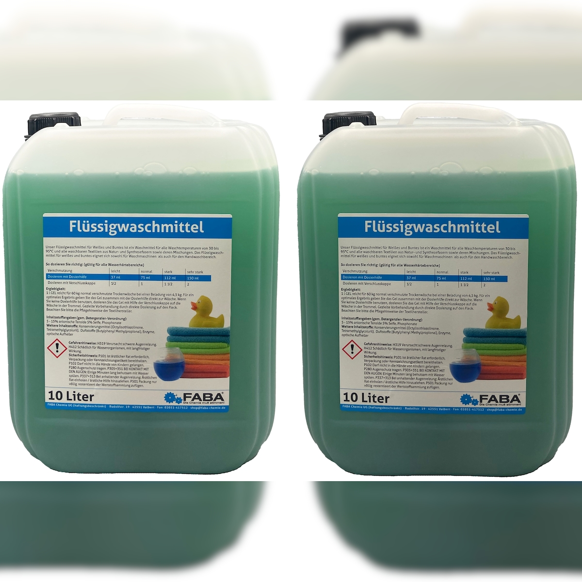 FABA Chemie Flüssigwaschmittel Konzentrat grün 2 x 10 L Kanister frisch angenehm