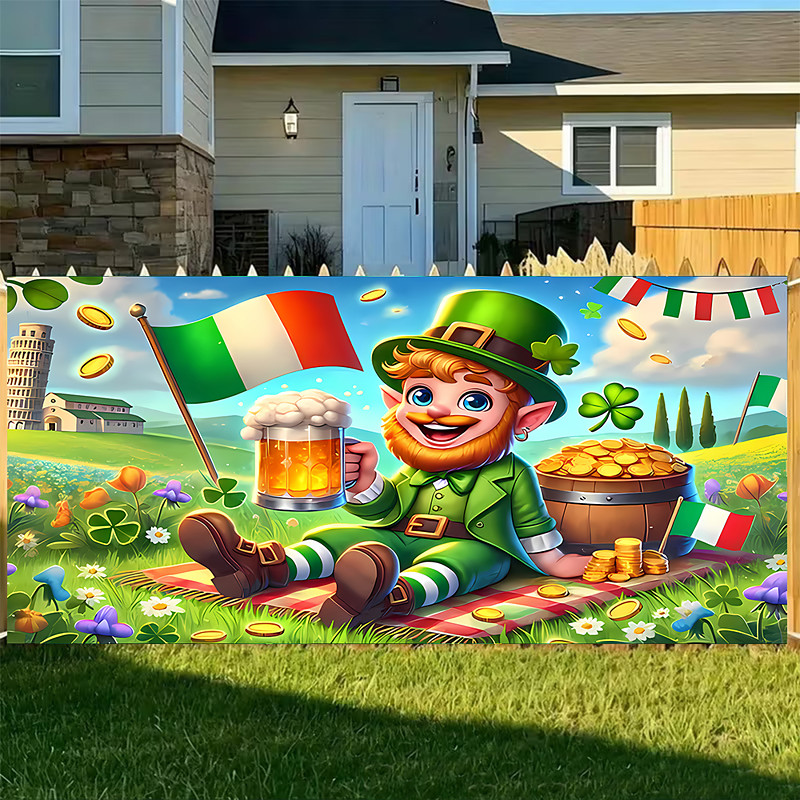 St. Patrick's Day Tapestry Garage Door Cover Large Hanging Backdrop Elf Cute 3D Party Outdoor Holiday Shooting Backgrounds Yard Home Decor