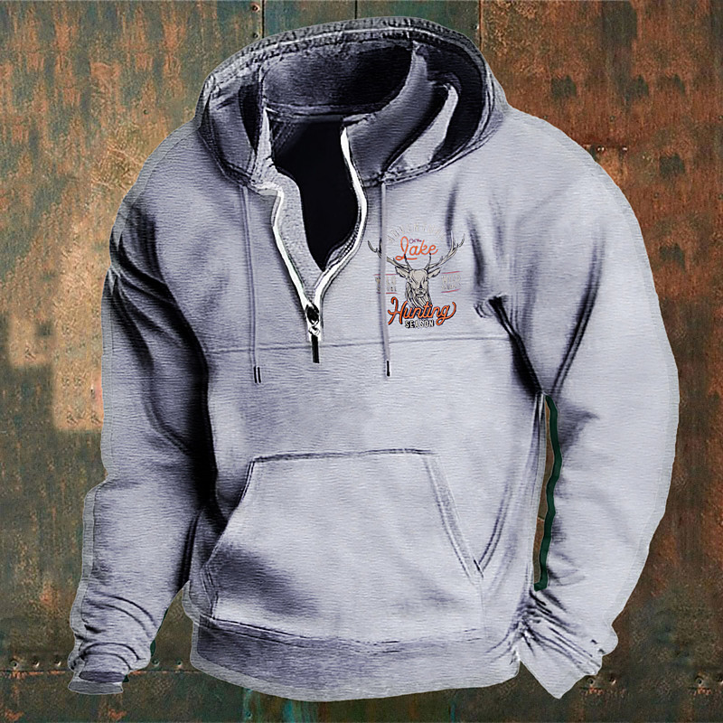 Men's Hoodie Wine Navy Blue Green Khaki Light Grey Hooded Elk Front Pocket Quarter Zip Daily Holiday Going out Polyester Streetwear Casual Bavarian Fall Winter Clothing Apparel Hoodies Sweatshirts