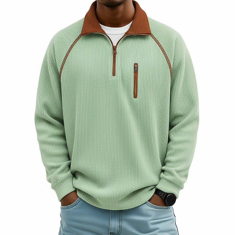 Men's Corduroy Shirt Quarter Zip Polo Casual Outdoor Quarter Zip Long Sleeve Fashion Modern Solid Color Knitted Warm Spring Fall All Seasons Loose Fit Blue Black Navy Blue Green Gray Corduroy Shirt